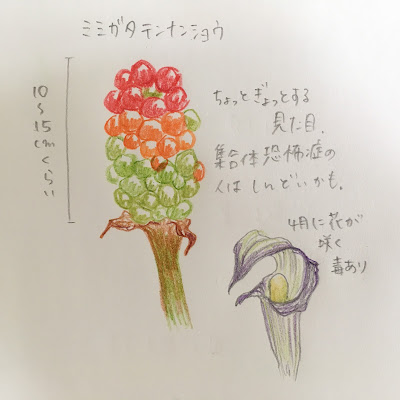 | 陣馬山で見たミミガタテンナンショウ 実が色づき始めてるのもあった |